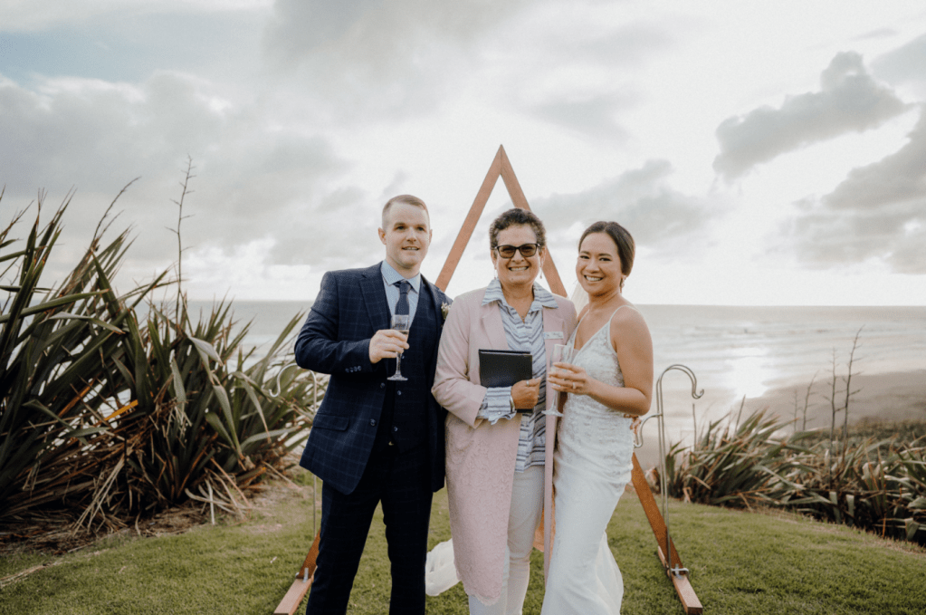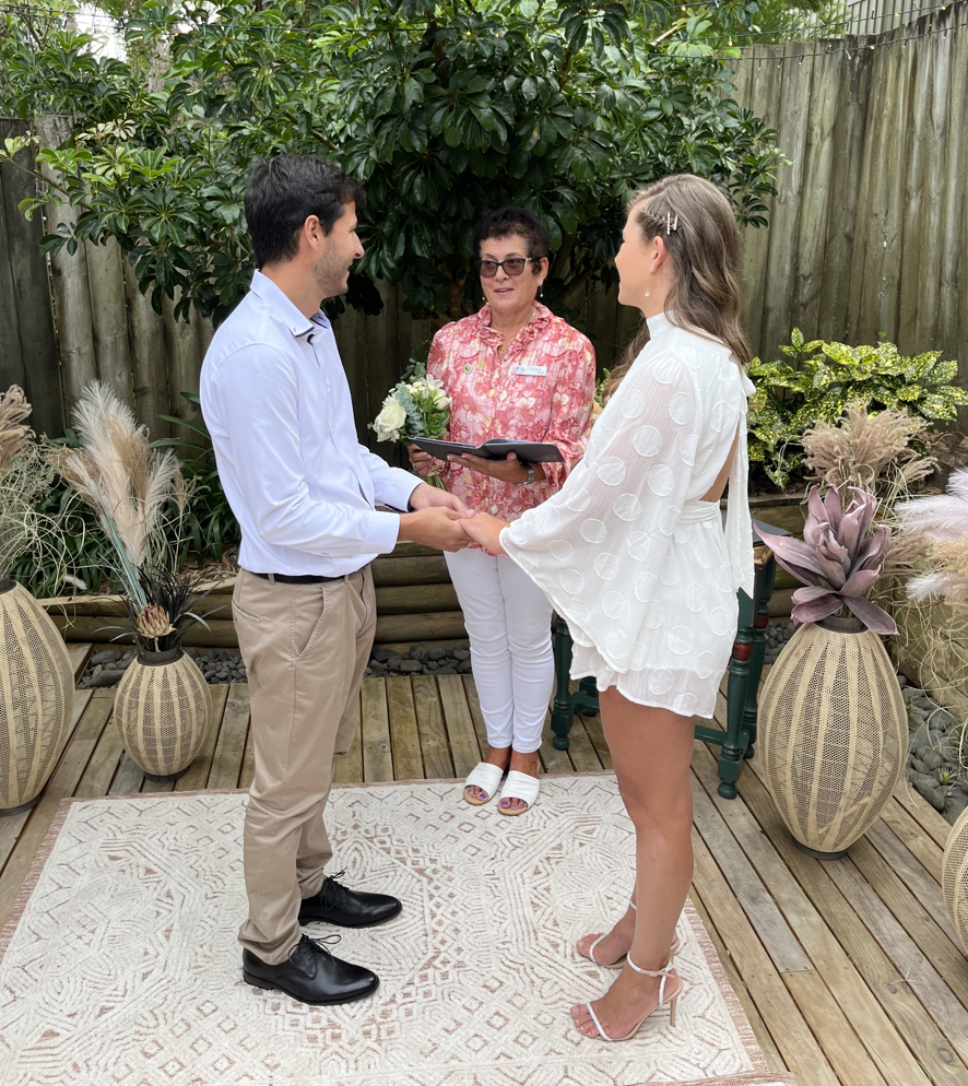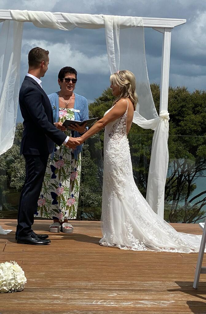 “Really enjoyed working with Cheryl! We had a small private ceremony at Tawharanui Beach, with a few friends and family members. Cheryl stood out for us because of the excellent organisational skills. From our first meeting on WhatsApp she proved to be well organised, with great time management skills and highly experienced. She knew what she is doing, quickly came up with beautiful words to accompany our ceremony and sand ritual, which made our official part flow smoothly.